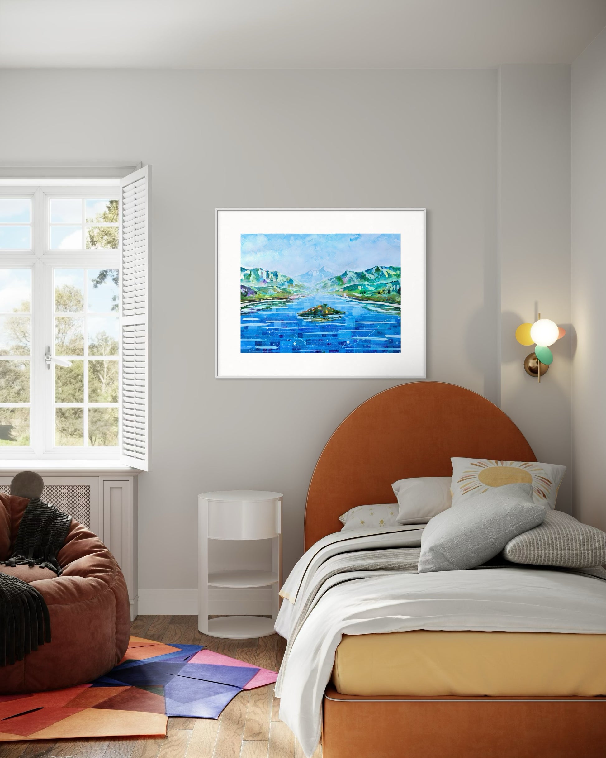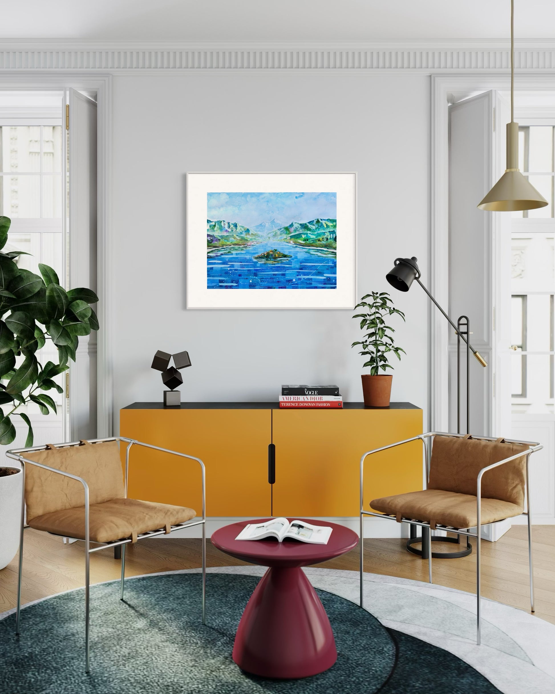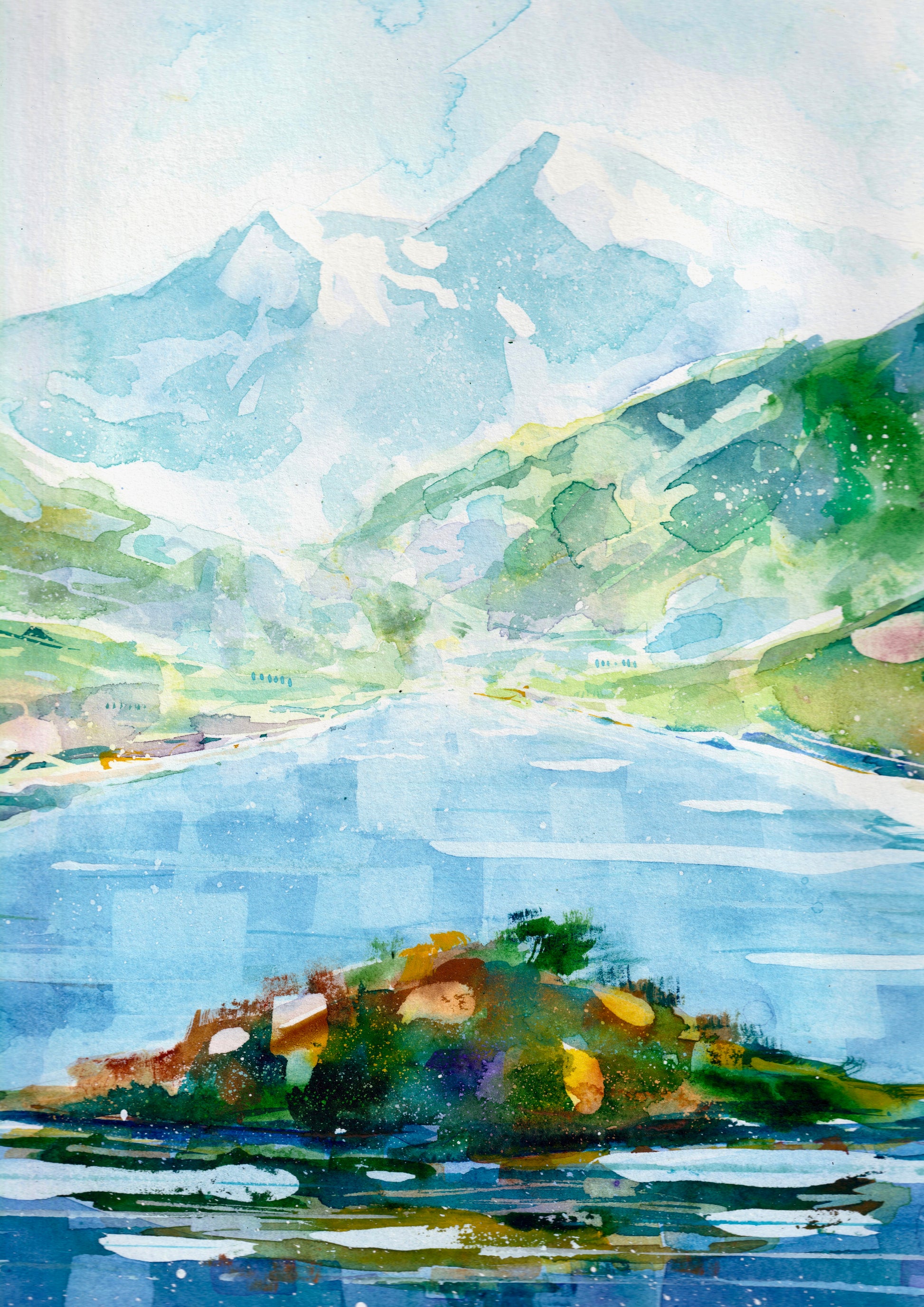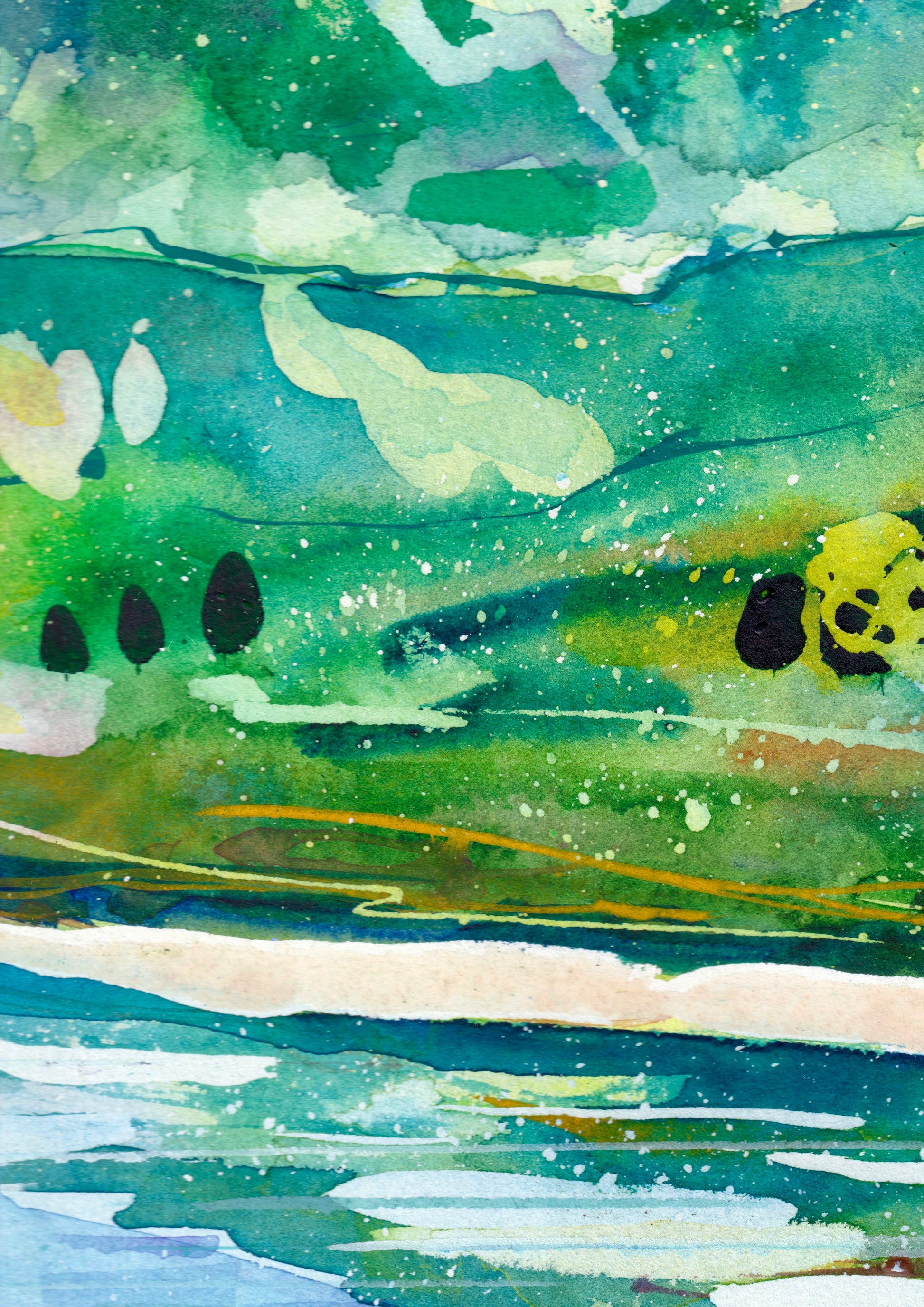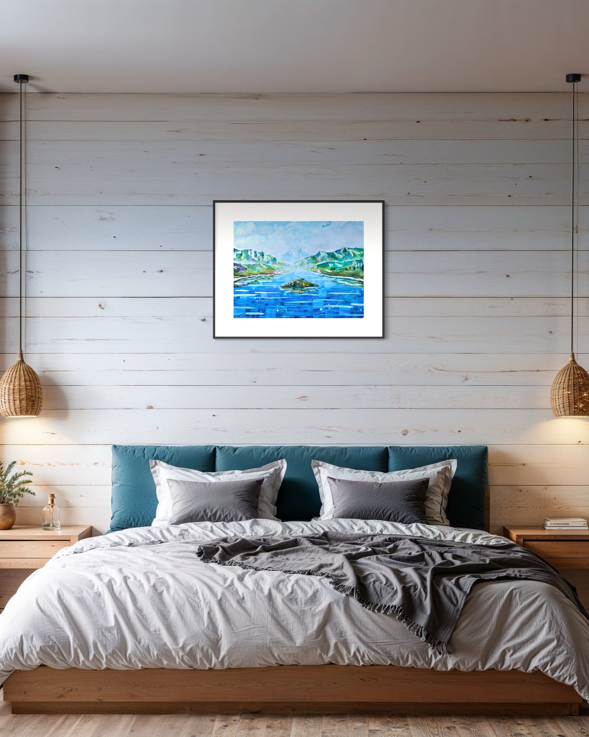 This is actually the second painting of this view, which is an interpretation of the landscape just in front on the holiday home in which I was staying. I found it therapeutic to revisit this scene with an emotion of hopefulness for whats ahead. The colours are punchy and deep, I hope I've captured the sense of space and water.