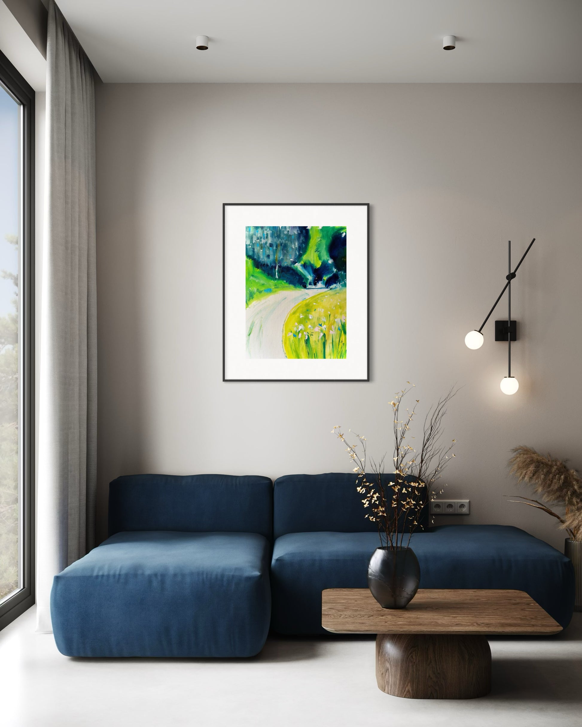 I provide framing consultation for each original painting, the cost includes that bespoke service. This can be done in person at my gallery or remotely if that isn't possible. I ship original paintings (all with art glass - or pallet frames if canvas) throughout the UK and internationally. If you have any questions please fee free to contact me.