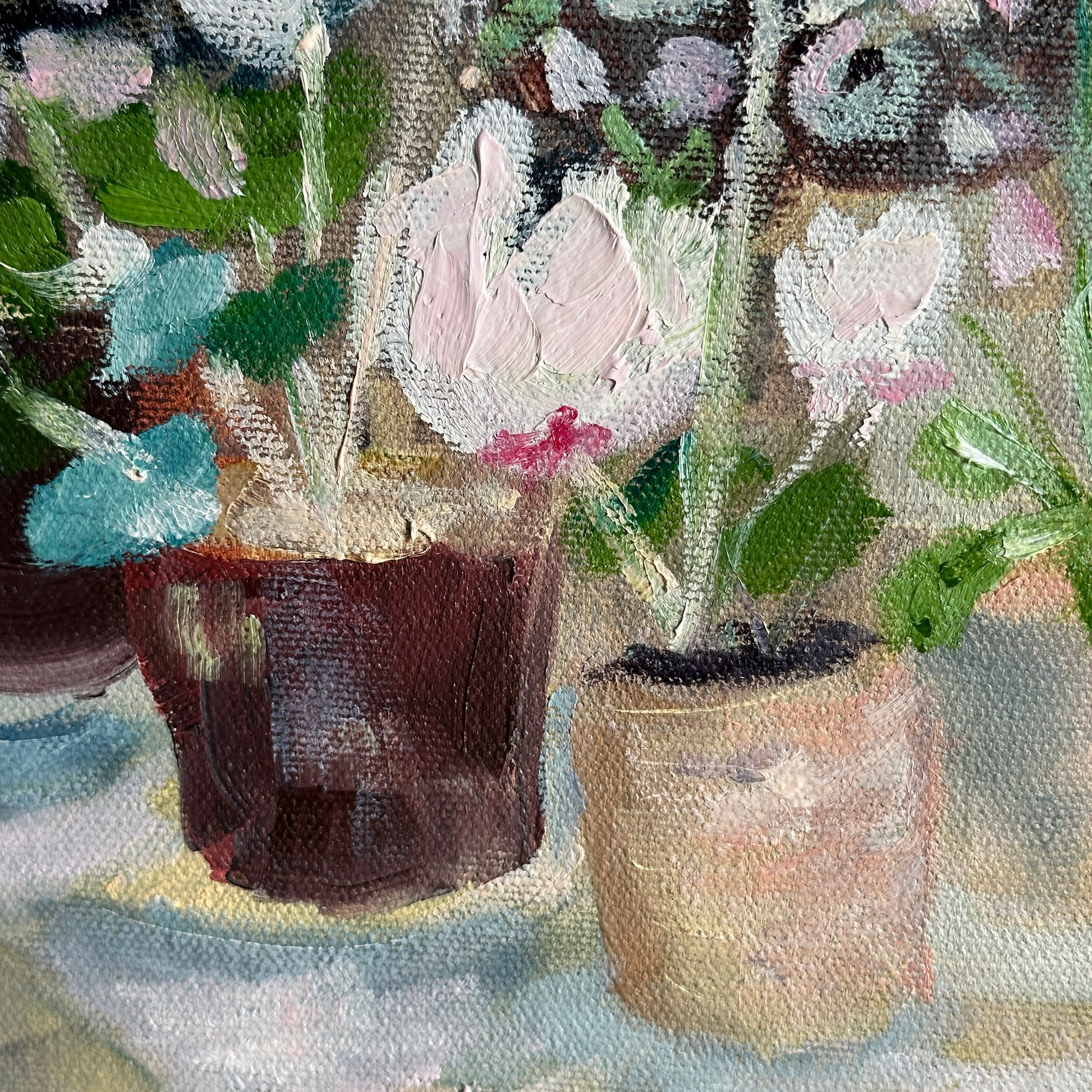 As my understanding of working with oils grows, so does my appreciation of the artists I so admire who have painted with oils in the past. One such artist is Winifred Nicholson, who painted with such a light touch that her work appears to look simple, almost naive, but when you break it down in terms of process, is anything but. This is my tribute to her, a still life full of light coming from a window. Simple. Lightness.
