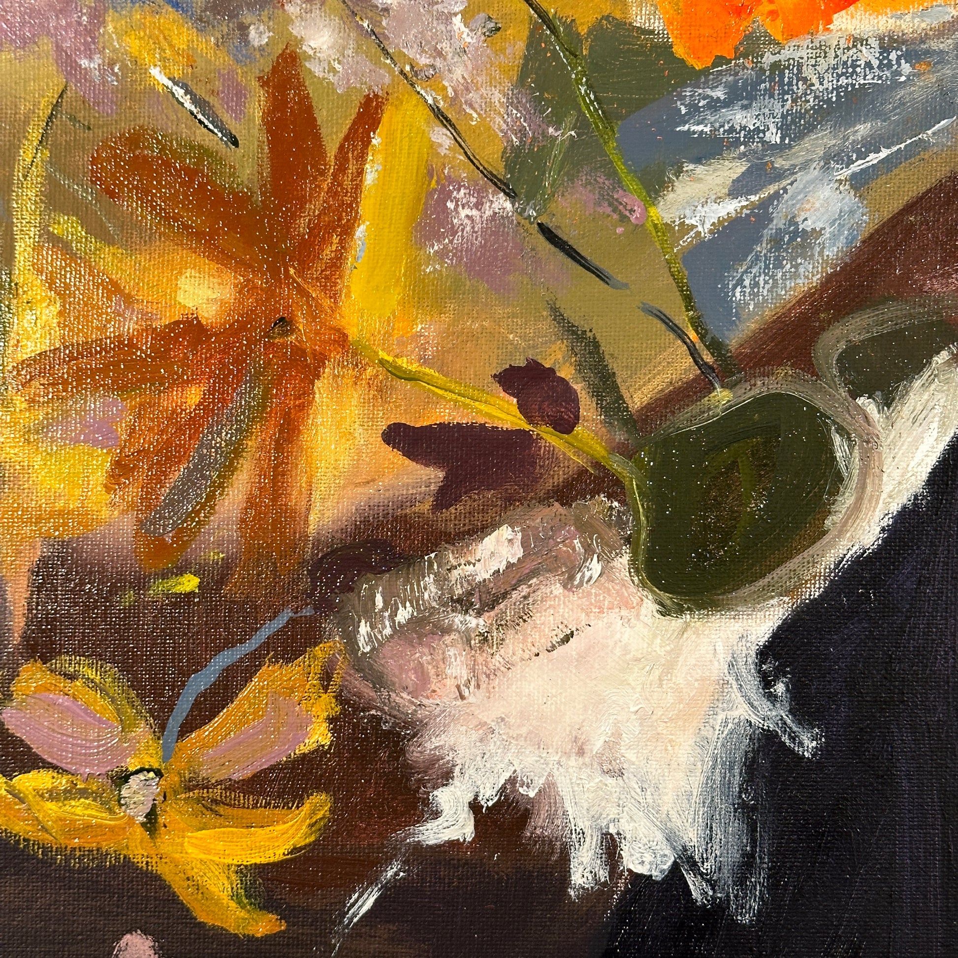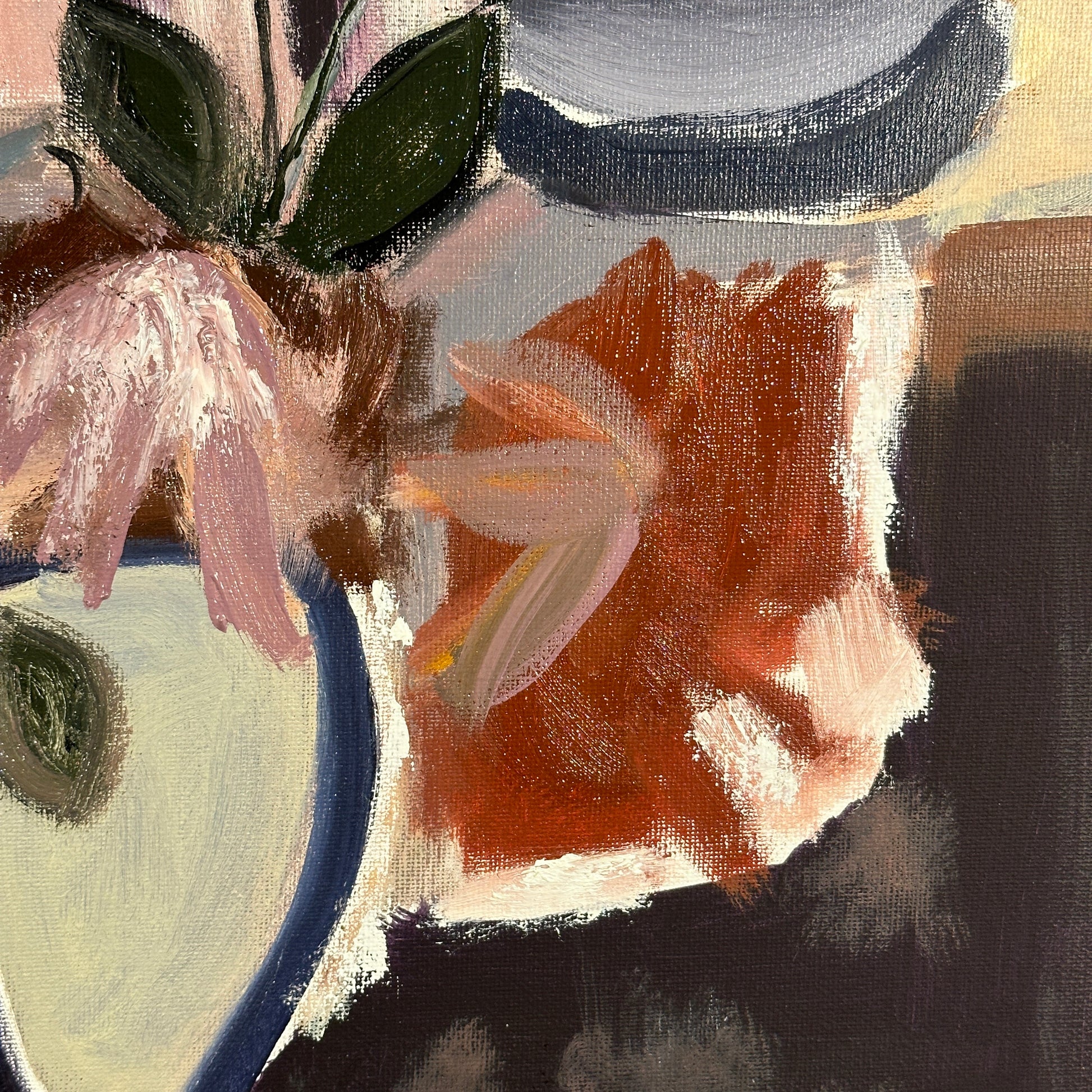 Many artists from the Renaissance, Impressionist, even Pop Art period would copy each others work and this is my interpretation of Ivon Hitchens style, which in trying to emulate in some way helps me explore different approaches in creating a 'feeling' to the way I paint. I hope that I've managed to capture a kind of tenderness in this still life, which was my aim.