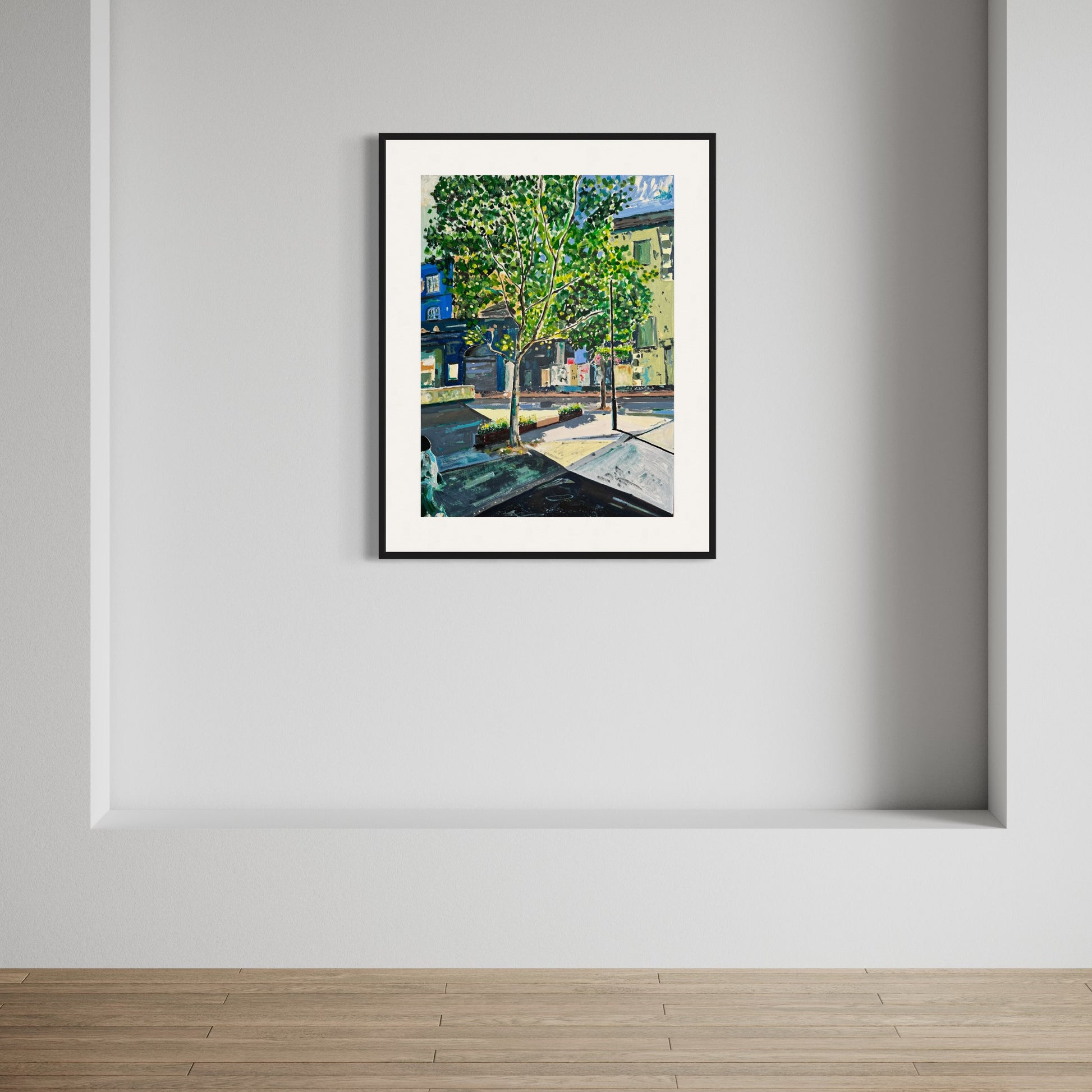 Seeing paintings by Van Gogh, Cezanne and Monet, amongst many others was really uplifting. With the weather so fine, London looked like a work of art passing through the backstreets, just beyond Somerset House in the theatre district. In a small square along Museum Street there were these beautiful trees against some slightly tired, but attractive buildings where the contrast of light and shade was stark. I made a quick sketch and took some photos to use back in the studio at some point.