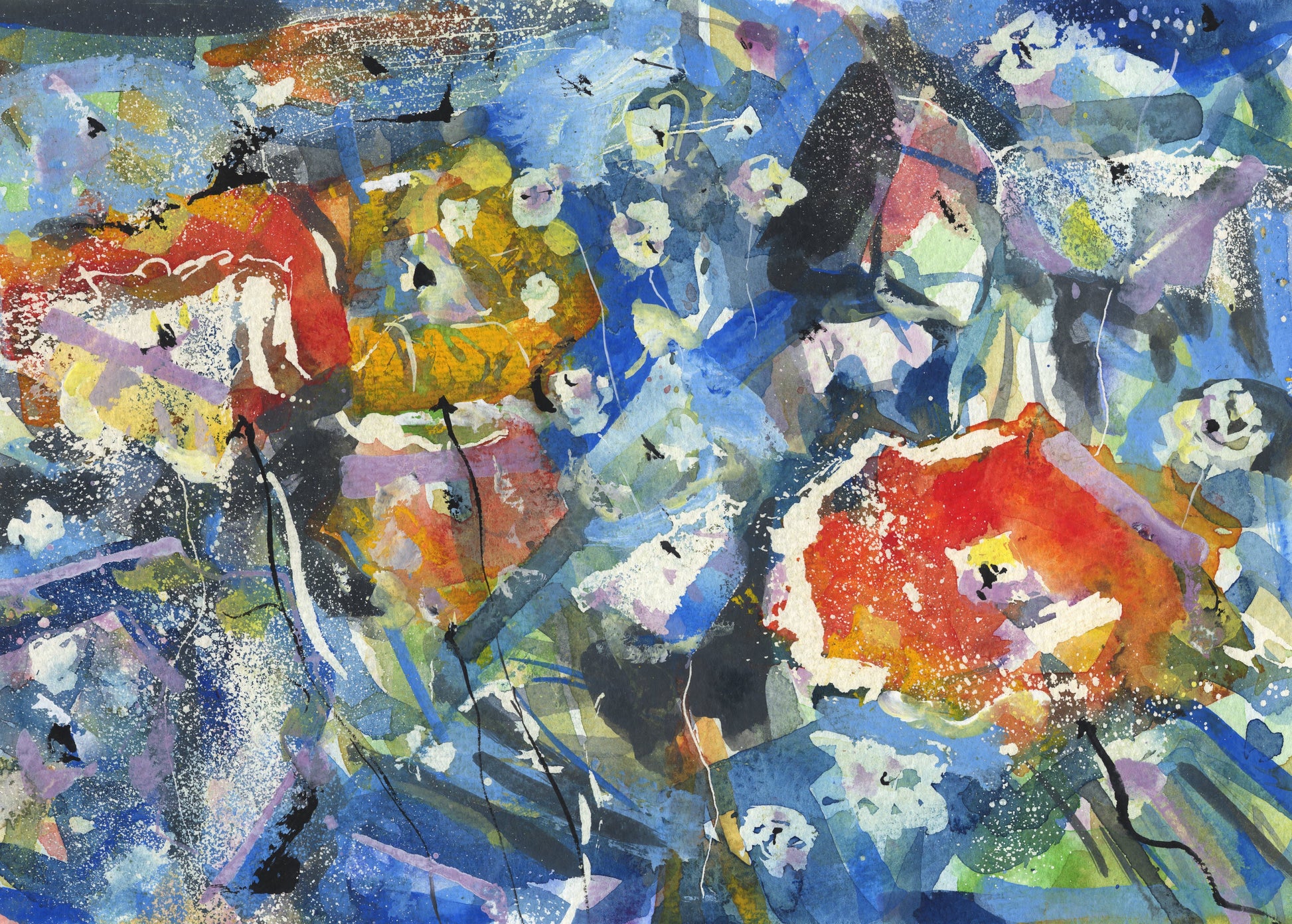 There's something so fragile and beautiful about Poppies. I love flowers of all kinds but there's something lovely about a field of grasses with Poppies popping out their heads of colour. This is a painting more about feeling than representation. As always I am trying to use watercolours in an impressionistic sense.