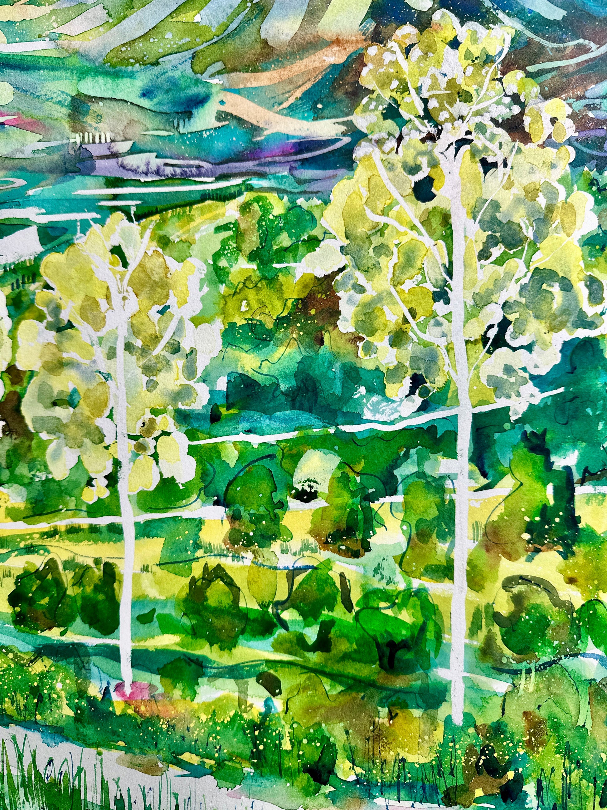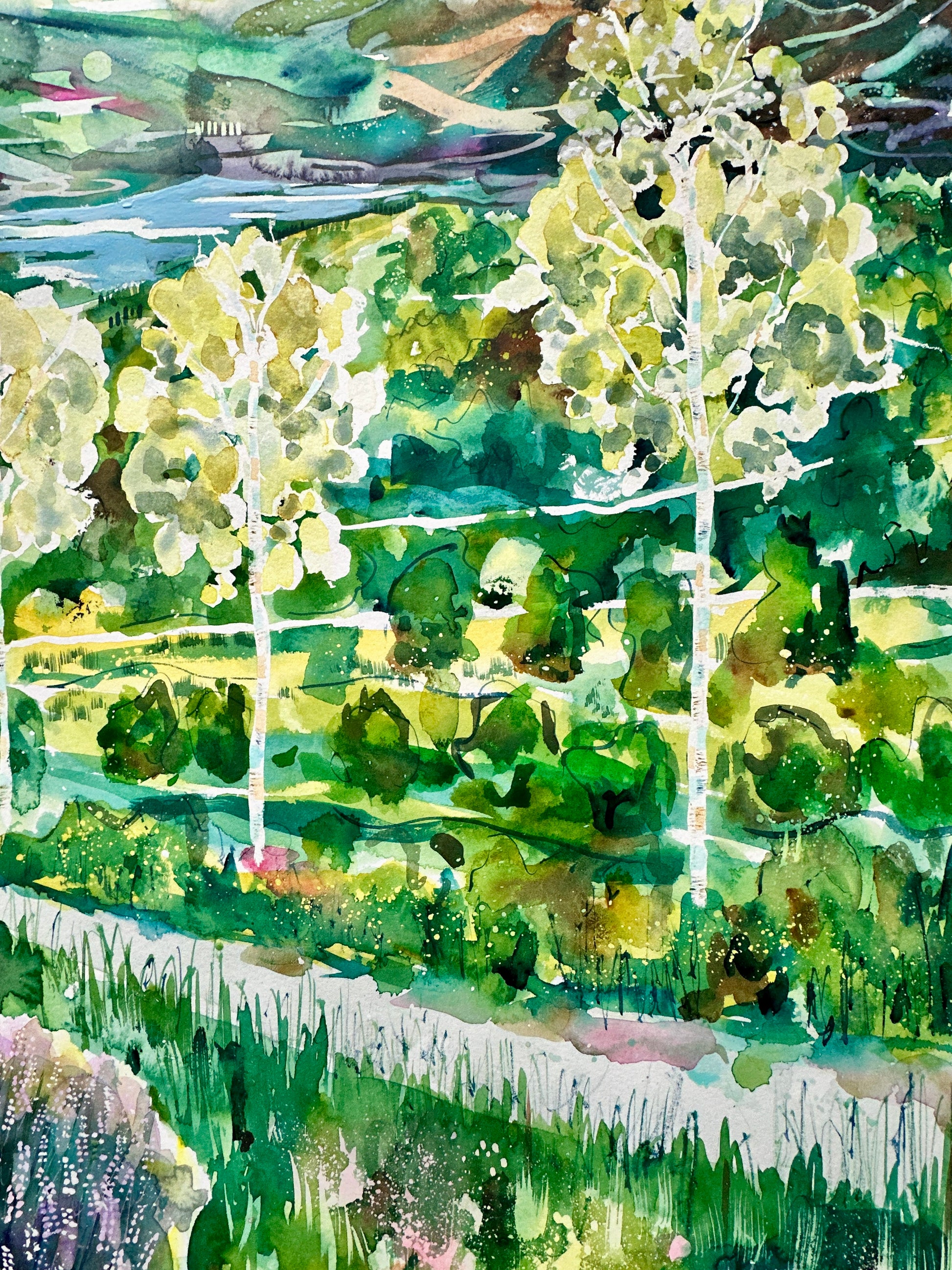 Walking in nature is wonderful and I was hoping to catch this feeling, with the birches soft yet luminous, standing apart, as they do - as some people do.