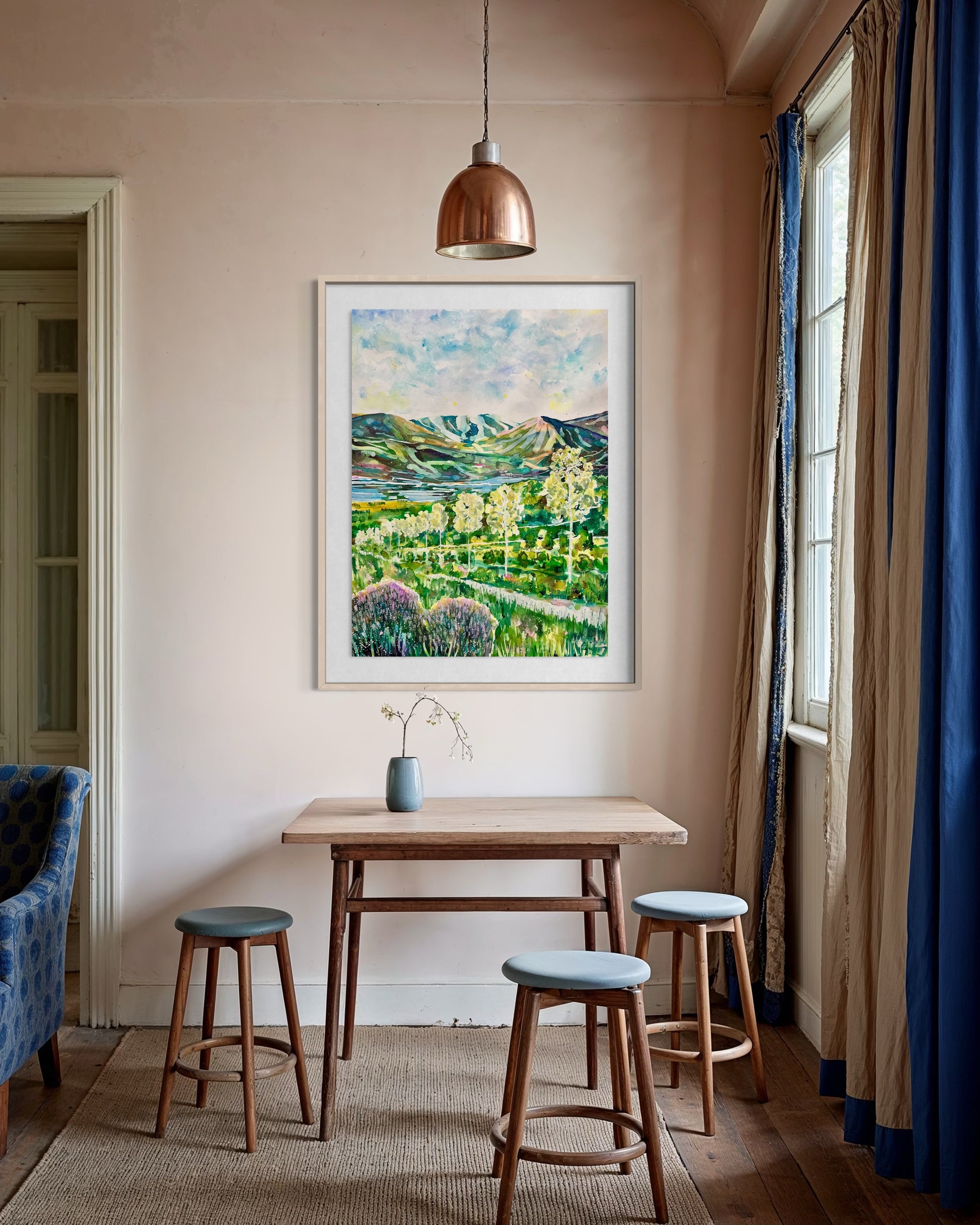 Along the great glen way, a 75 mile walking route from Fort William to Inverness, there are forks along the way, where you can opt to take a high route - obviously, this seems to best choice despite the added physical push. There was one point looking over Loch Ness where there was a row of Silver Birch trees, caught in the high bright light of midday. They looked so graceful, and the image stayed with me. I love trees and birch trees in particular. We had one in the front garden of the house I grew up in, I remember lying on my bed with the window open in the summer and listening to the rustle of the leaves, a unique and lovely sound with a lullaby quality.
