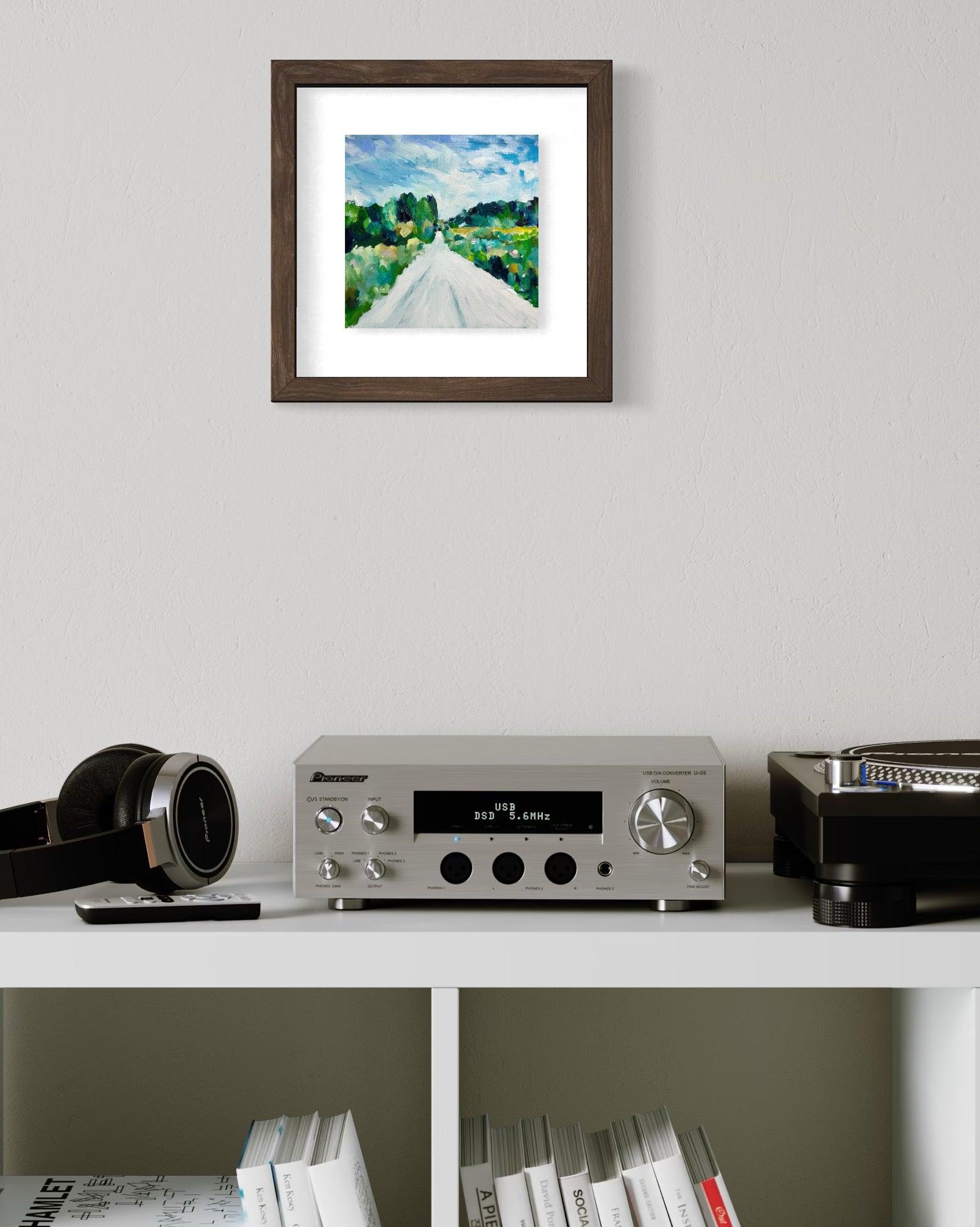 Shadow floated with textured, solid wood frame in light grey (see photos).